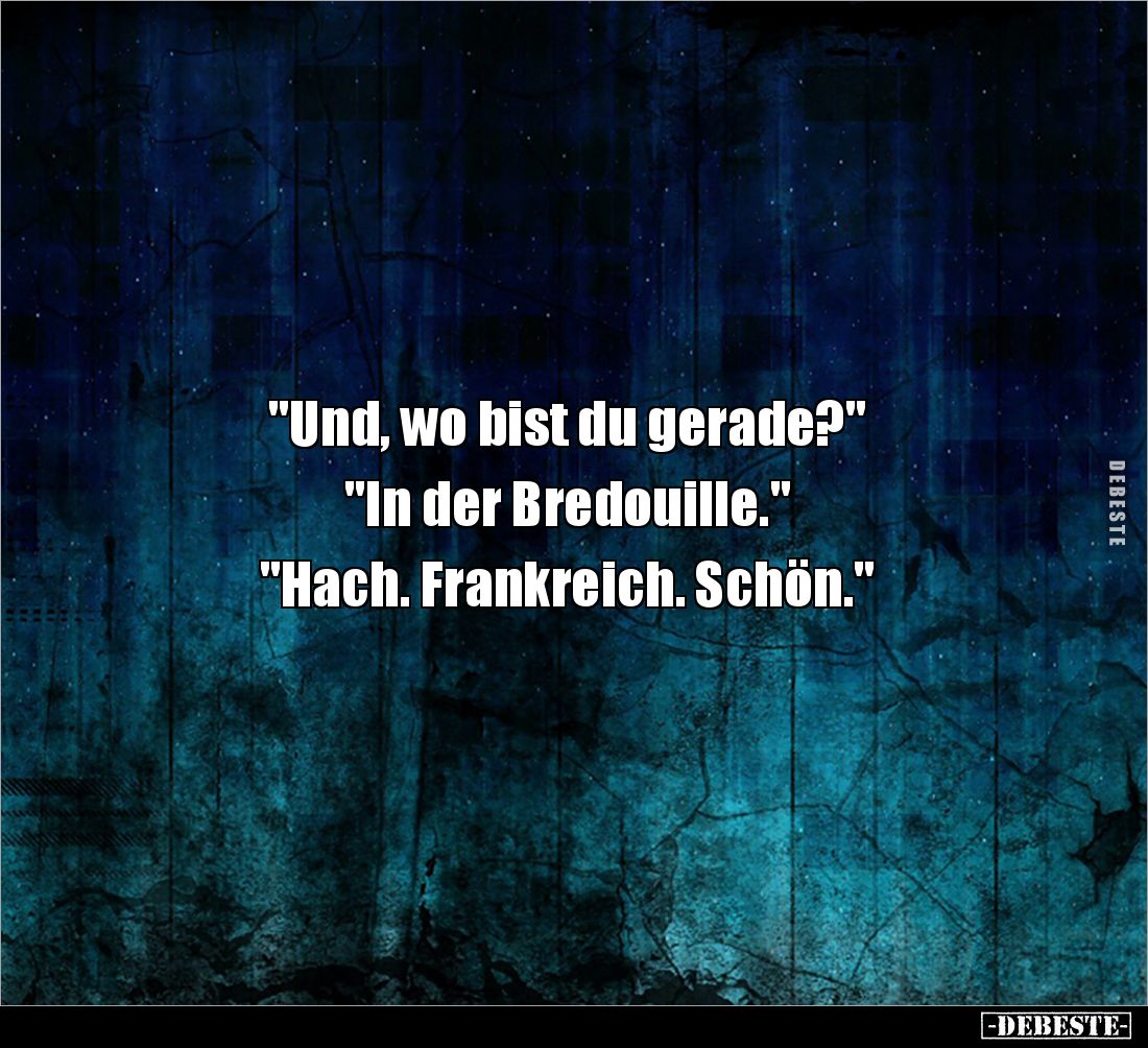 "Und, wo bist du gerade?" "In der Bredouille." "Hach. Frankreich. Schön."