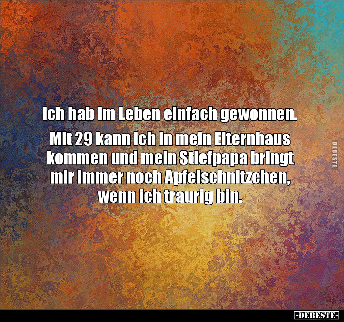 Ich hab im Leben einfach gewonnen. Mit 29 kann ich in mein Elternhaus kommen und mein Stiefpapa bringt mir immer noch Apfelschnitzchen, wenn ich traurig bin.