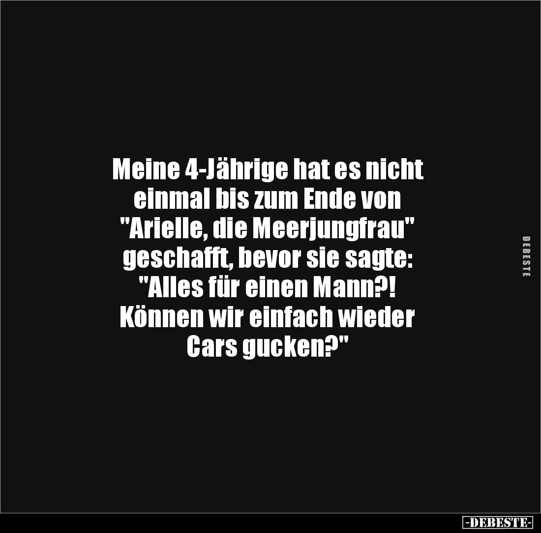 Meine 4-Jährige hat es nicht einmal bis zum Ende von "Arielle, die Meerjungfrau" geschafft, bevor sie sagte: "Alles für einen Mann?! Können wir einfach wieder Cars gucken?"