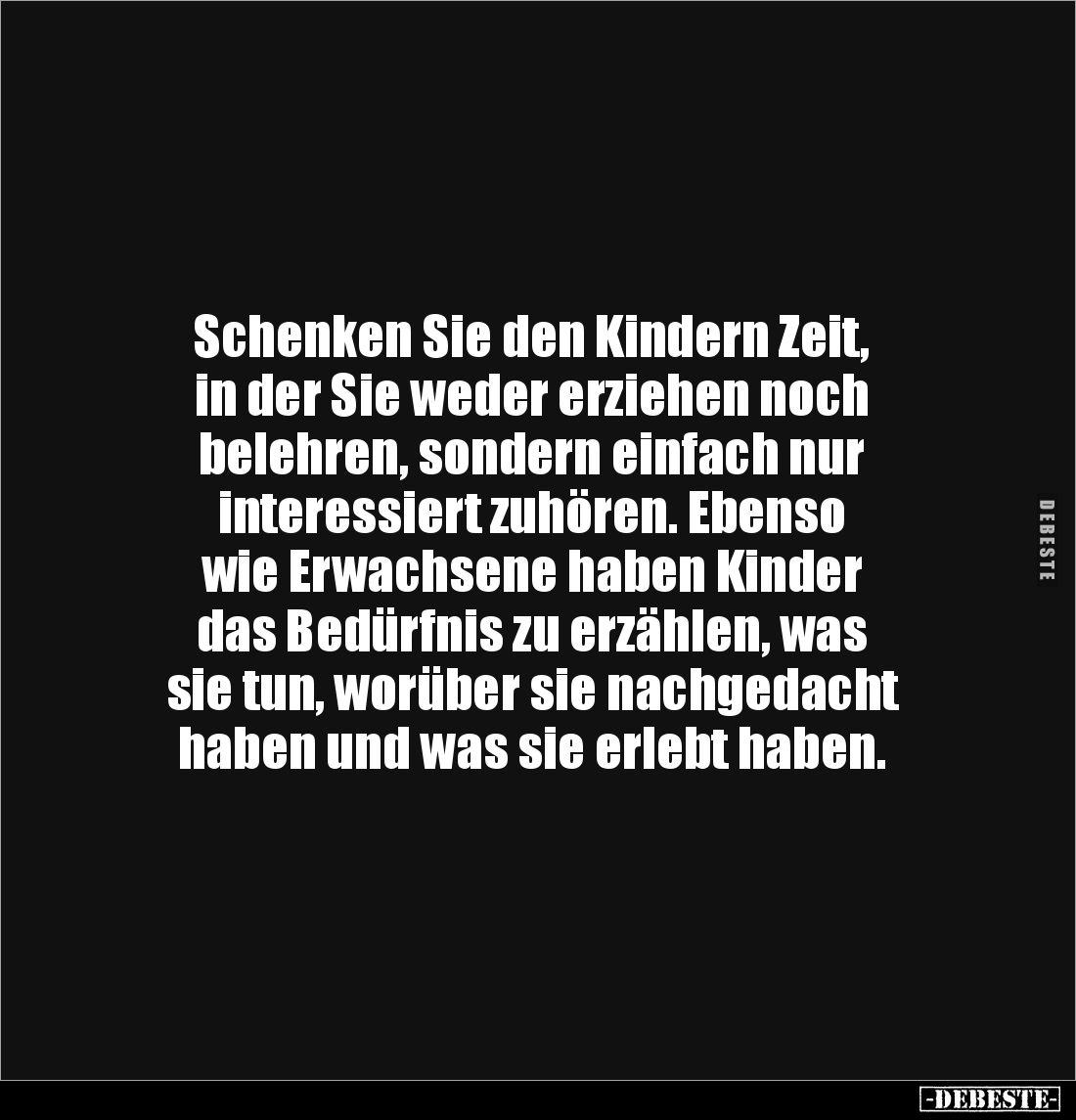 Schenken Sie den Kindern Zeit, in der Sie weder erziehen noch belehren, sondern einfach nur interessiert zuhören. Ebenso wie Erwachsene haben Kinder das Bedürfnis zu erzählen, was sie tun, worüber sie nachgedacht haben und was sie erlebt haben.