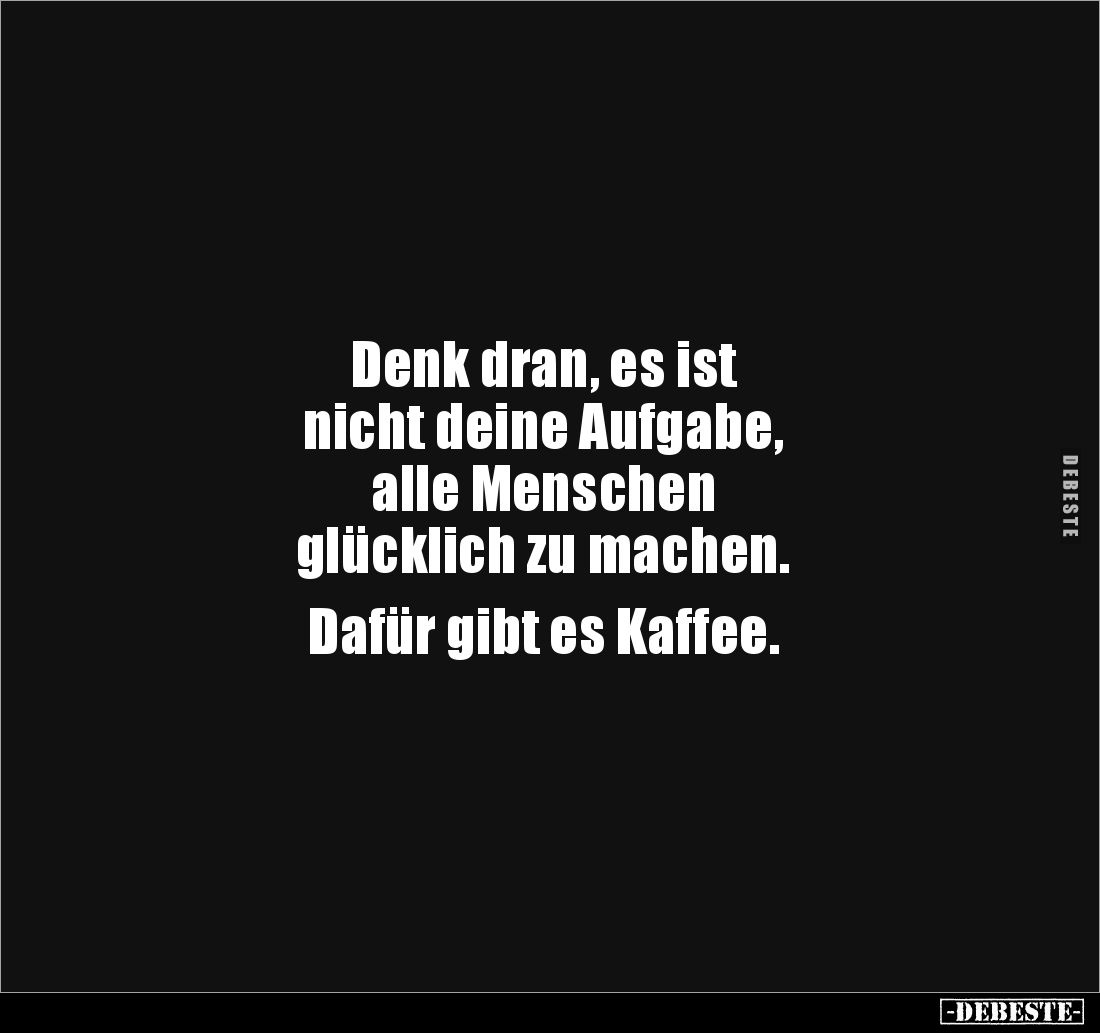 Denk dran, es ist nicht deine Aufgabe, alle Menschen glücklich zu machen. Dafür gibt es Kaffee.