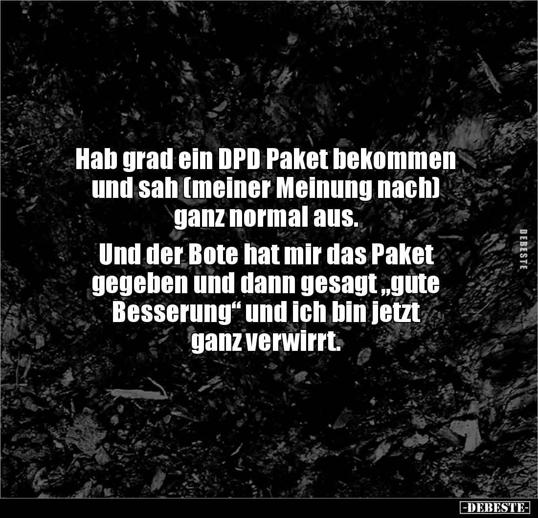 Hab grad ein DPD Paket bekommen und sah (meiner Meinung nach) ganz normal aus. Und der Bote hat mir das Paket gegeben und dann gesagt „gute Besserung“ und ich bin jetzt ganz verwirrt.