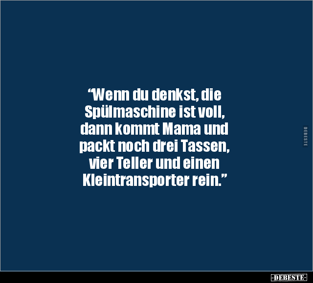 “Wenn du denkst, die Spülmaschine ist voll, dann kommt Mama und packt noch drei Tassen, vier Teller und einen Kleintransporter rein.”