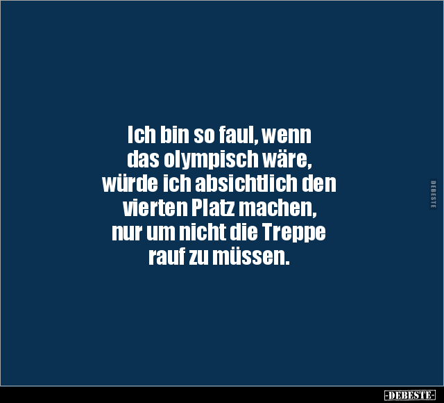 Ich bin so faul, wenn das olympisch wäre, würde ich absichtlich den vierten Platz machen, nur um nicht die Treppe rauf zu müssen.