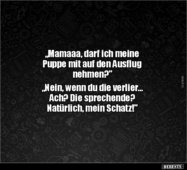 „Mamaaa, darf ich meine Puppe mit auf den Ausflug nehmen?” „Nein, wenn du die verlier… Ach? Die sprechende? Natürlich, mein Schatz!”