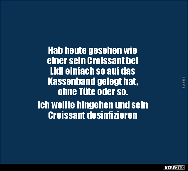 Hab heute gesehen wie einer sein Croissant bei Lidl einfach so auf das Kassenband gelegt hat, ohne Tüte oder so. Ich wollte hingehen und sein Croissant desinfizieren
