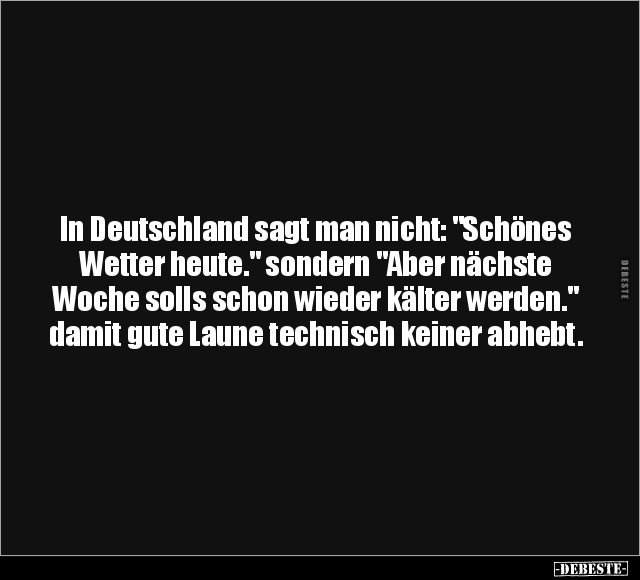 In Deutschland sagt man nicht: "Schönes Wetter heute." sondern "Aber nächste Woche solls schon wieder kälter werden." damit gute Laune technisch keiner abhebt.