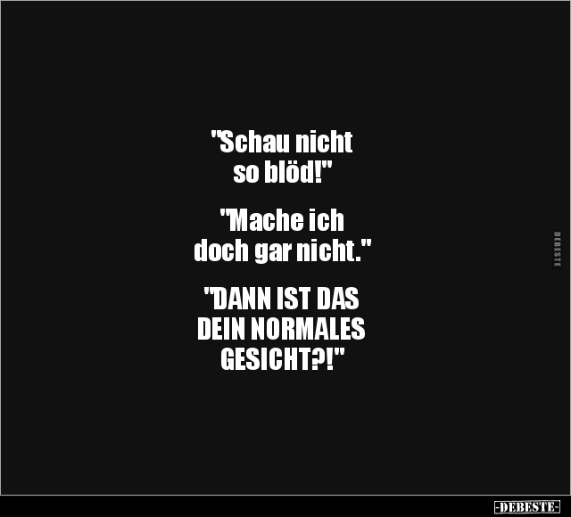 "Schau nicht so blöd!" "Mache ich doch gar nicht." "DANN IST DAS DEIN NORMALES GESICHT?!"