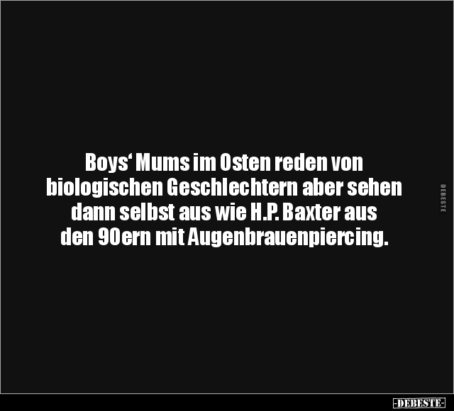 Boys‘ Mums im Osten reden von biologischen Geschlechtern aber sehen dann selbst aus wie H.P. Baxter aus den 90ern mit Augenbrauenpiercing.