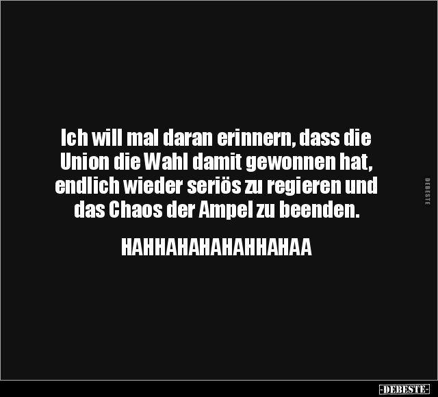 Ich will mal daran erinnern, dass die Union die Wahl damit gewonnen hat, endlich wieder seriös zu regieren und das Chaos der Ampel zu beenden. HAHHAHAHAHAHHAHAA