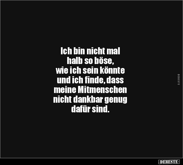 Ich bin nicht mal halb so böse, wie ich sein könnte und ich finde, dass meine Mitmenschen nicht dankbar genug dafür sind.