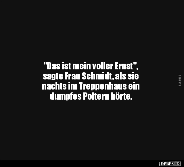 "Das ist mein voller Ernst", sagte Frau Schmidt, als sie nachts im Treppenhaus ein dumpfes Poltern hörte.