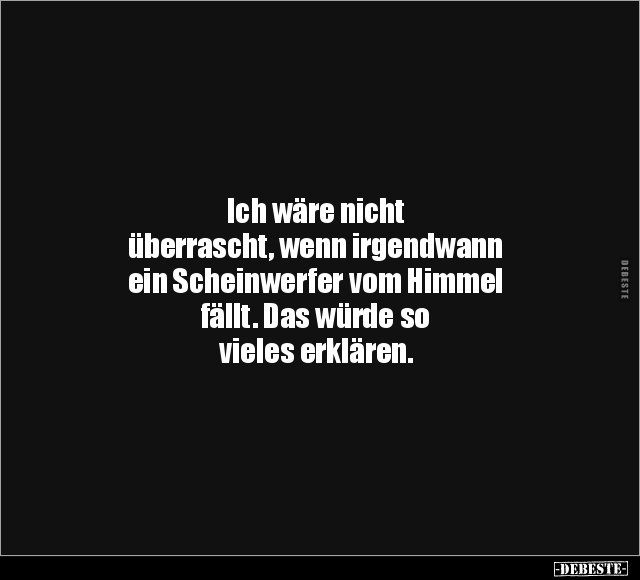 Ich wäre nicht überrascht, wenn irgendwann ein Scheinwerfer vom Himmel fällt. Das würde so vieles erklären.