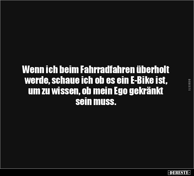 Wenn ich beim Fahrradfahren überholt werde, schaue ich ob es ein E-Bike ist, um zu wissen, ob mein Ego gekränkt sein muss.