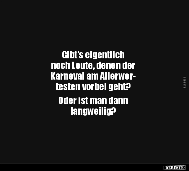 Gibt’s eigentlich noch Leute, denen der Karneval am Allerwer- testen vorbei geht? Oder ist man dann langweilig?