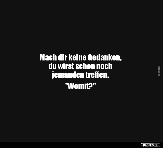 Mach dir keine Gedanken, du wirst schon noch jemanden treffen. "Womit?"