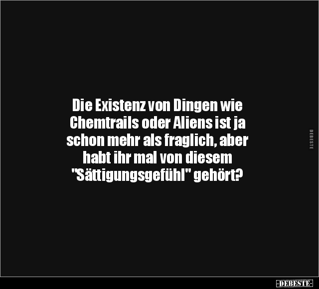 Die Existenz von Dingen wie Chemtrails oder Aliens ist ja schon mehr als fraglich, aber habt ihr mal von diesem "Sättigungsgefühl" gehört?