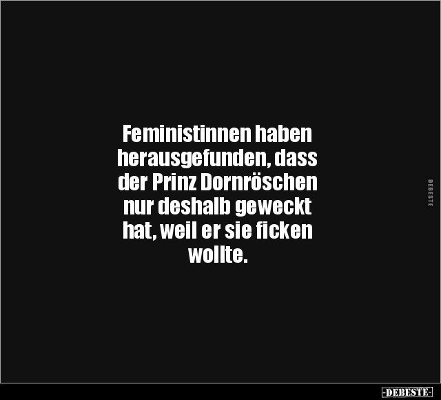 Feministinnen haben herausgefunden, dass der Prinz Dornröschen nur deshalb geweckt hat, weil er sie ficken wollte.