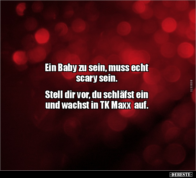 Ein Baby zu sein, muss echt scary sein. Stell dir vor, du schläfst ein und wachst in TK Maxx auf.