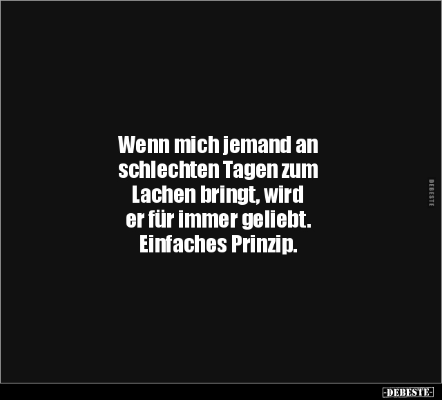 Wenn mich jemand an schlechten Tagen zum Lachen bringt, wird er für immer geliebt. Einfaches Prinzip.