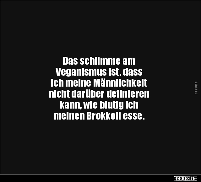 Das schlimme am Veganismus ist, dass ich meine Männlichkeit nicht darüber definieren kann, wie blutig ich meinen Brokkoli esse.