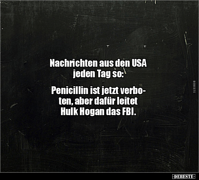 Nachrichten aus den USA jeden Tag so: Penicillin ist jetzt verbo- ten, aber dafür leitet Hulk Hogan das FBI.