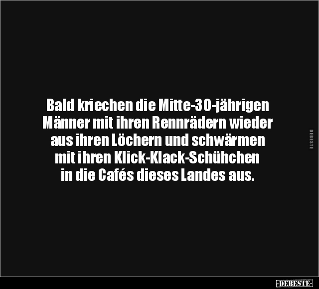 Bald kriechen die Mitte-30-jährigen Männer mit ihren Rennrädern wieder aus ihren Löchern und schwärmen mit ihren Klick-Klack-Schühchen in die Cafés dieses Landes aus.