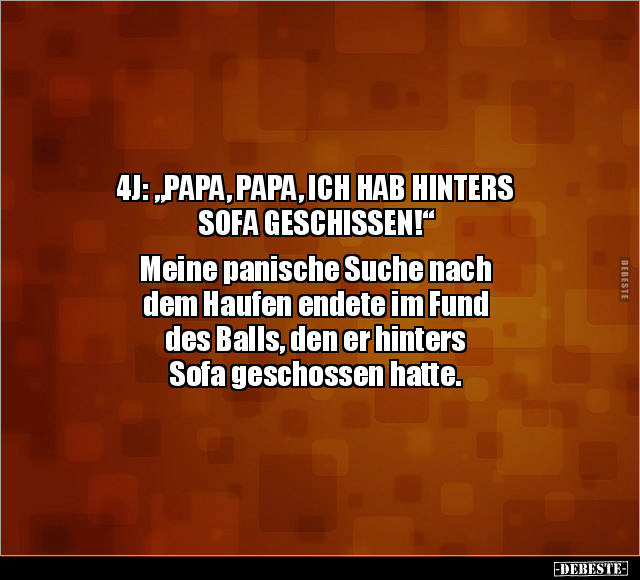 4J: „PAPA, PAPA, ICH HAB HINTERS SOFA GESCHISSEN!“ Meine panische Suche nach dem Haufen endete im Fund des Balls, den er hinters Sofa geschossen hatte.