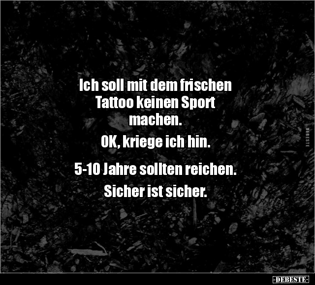 Ich soll mit dem frischen Tattoo keinen Sport machen. OK, kriege ich hin. 5-10 Jahre sollten reichen. Sicher ist sicher.