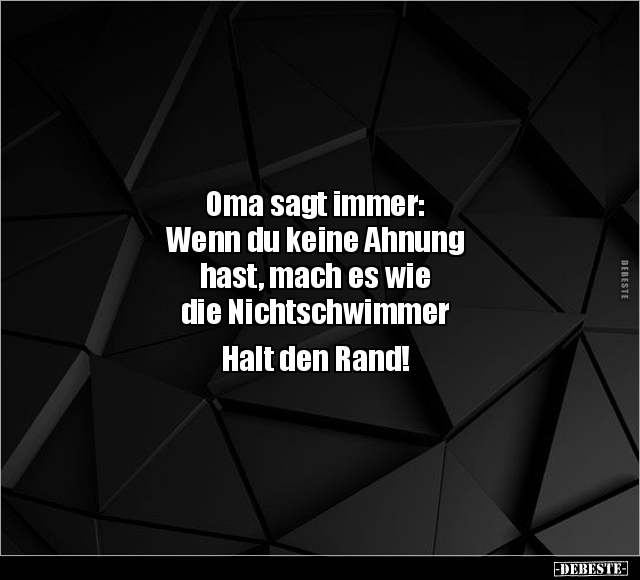 Oma sagt immer: Wenn du keine Ahnung hast, mach es wie die Nichtschwimmer Halt den Rand!