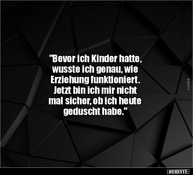 "Bevor ich Kinder hatte, wusste ich genau, wie Erziehung funktioniert. Jetzt bin ich mir nicht mal sicher, ob ich heute geduscht habe."