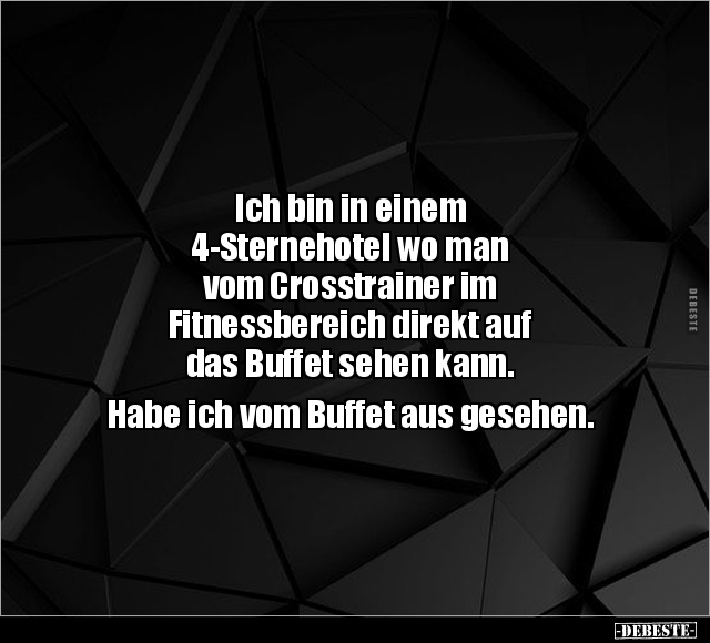 Ich bin in einem 4-Sternehotel wo man vom Crosstrainer im Fitnessbereich direkt auf das Buffet sehen kann. Habe ich vom Buffet aus gesehen.