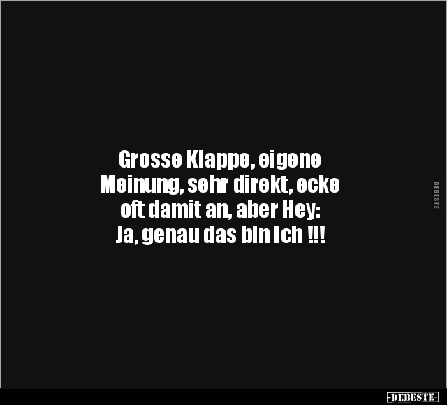 Grosse Klappe, eigene Meinung, sehr direkt, ecke oft damit an, aber Hey: Ja, genau das bin Ich !!!