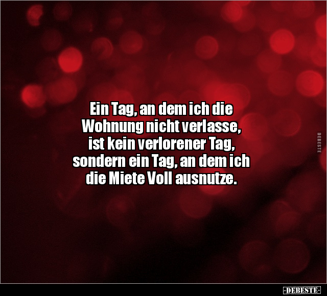 Ein Tag, an dem ich die Wohnung nicht verlasse, ist kein verlorener Tag, sondern ein Tag, an dem ich die Miete Voll ausnutze.