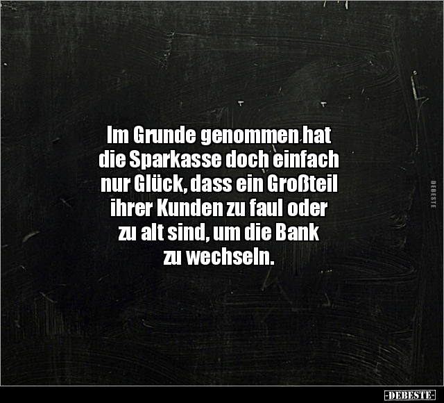 Im Grunde genommen hat die Sparkasse doch einfach nur Glück, dass ein Großteil ihrer Kunden zu faul oder zu alt sind, um die Bank zu wechseln.