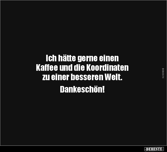 Ich hätte gerne einen Kaffee und die Koordinaten zu einer besseren Welt. Dankeschön!