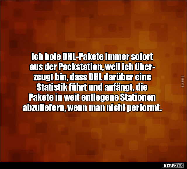 Ich hole DHL-Pakete immer sofort aus der Packstation, weil ich über- zeugt bin, dass DHL darüber eine Statistik führt und anfängt, die Pakete in weit entlegene Stationen abzuliefern, wenn man nicht performt.