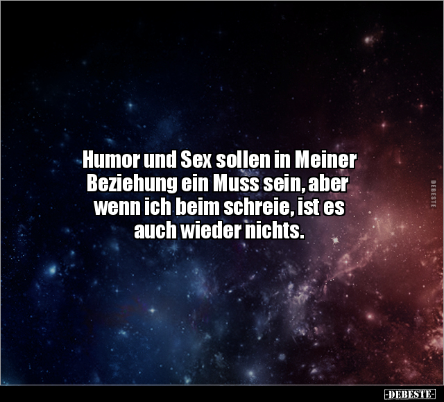 Humor und Sex sollen in Meiner Beziehung ein Muss sein, aber wenn ich beim schreie, ist es auch wieder nichts.