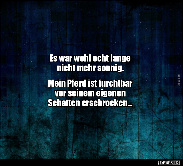 Es war wohl echt lange nicht mehr sonnig. Mein Pferd ist furchtbar vor seinem eigenen Schatten erschrocken...