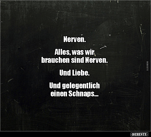 Nerven. Alles, was wir brauchen sind Nerven. Und Liebe. Und gelegentlich einen Schnaps...
