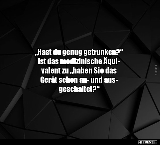 „Hast du genug getrunken?“ ist das medizinische Äqui- valent zu „haben Sie das Gerät schon an- und aus- geschaltet?“