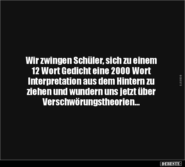Wir zwingen Schüler, sich zu einem 12 Wort Gedicht eine 2000 Wort Interpretation aus dem Hintern zu ziehen und wundern uns jetzt über Verschwörungstheorien…