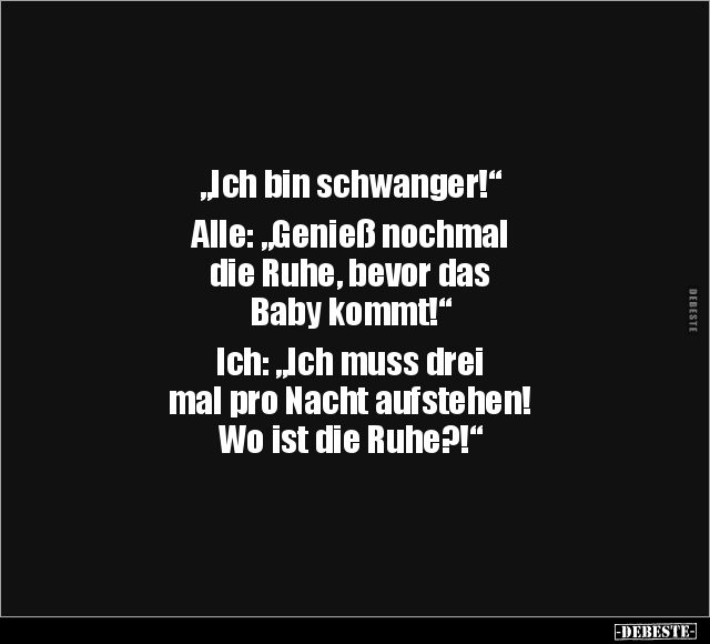„Ich bin schwanger!“ Alle: „Genieß nochmal die Ruhe, bevor das Baby kommt!“ Ich: „Ich muss drei mal pro Nacht aufstehen! Wo ist die Ruhe?!“