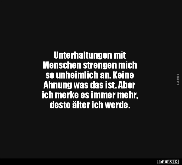 Unterhaltungen mit Menschen strengen mich so unheimlich an. Keine Ahnung was das ist. Aber ich merke es immer mehr, desto älter ich werde.
