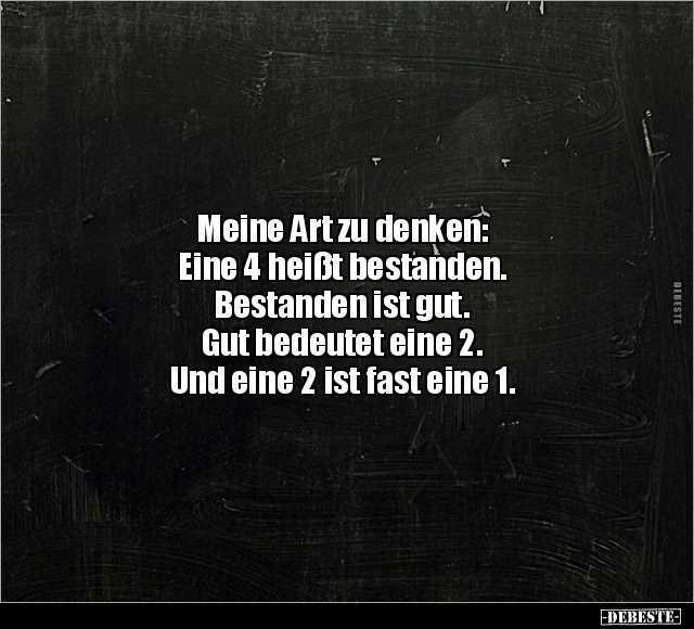 Meine Art zu denken: Eine 4 heißt bestanden. Bestanden ist gut. Gut bedeutet eine 2. Und eine 2 ist fast eine 1.
