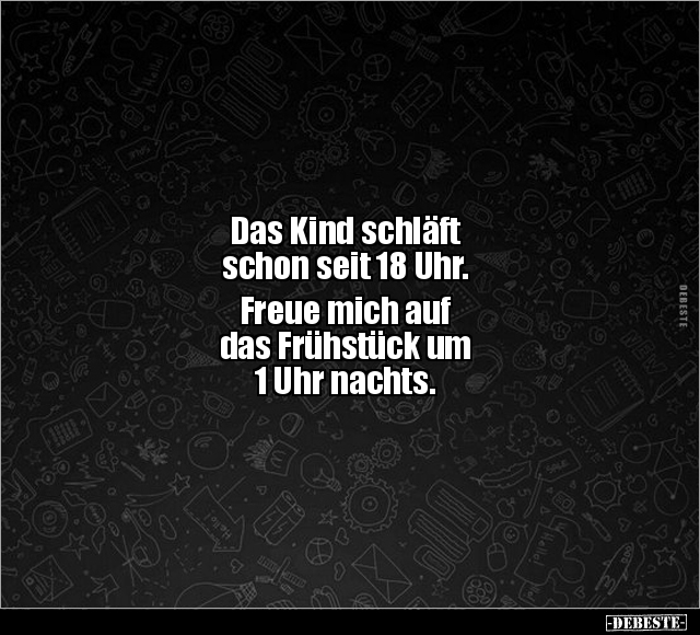Das Kind schläft schon seit 18 Uhr. Freue mich auf das Frühstück um 1 Uhr nachts.