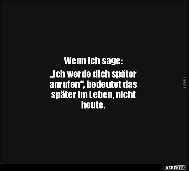 Wenn ich sage: „Ich werde dich später anrufen“, bedeutet das später im Leben, nicht heute.