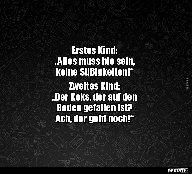 Erstes Kind: „Alles muss bio sein, keine Süßigkeiten!“ Zweites Kind: „Der Keks, der auf den Boden gefallen ist? Ach, der geht noch!“