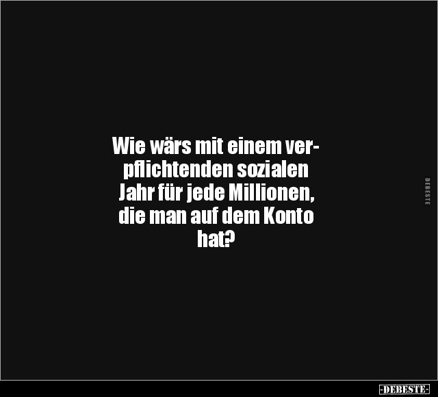 Wie wärs mit einem ver- pflichtenden sozialen Jahr für jede Millionen, die man auf dem Konto hat?