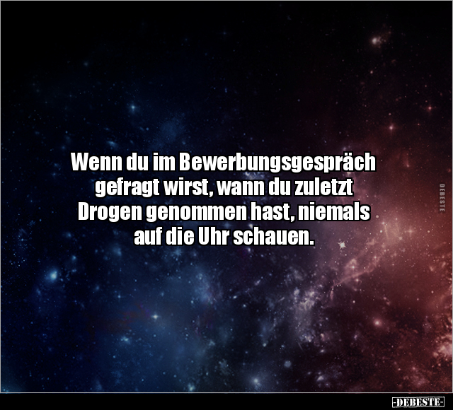 Wenn du im Bewerbungsgespräch gefragt wirst, wann du zuletzt Drogen genommen hast, niemals auf die Uhr schauen.